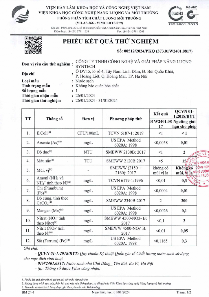 ⭐ Tiêu chuẩn nước sau lọc: QCVN 01-1:2018/BYT