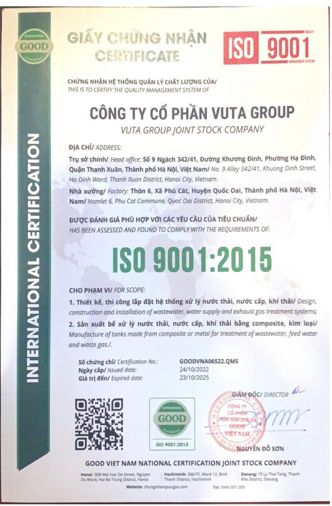 GIẤY CHỨNG NHẬN NƯỚC SAU LỌC